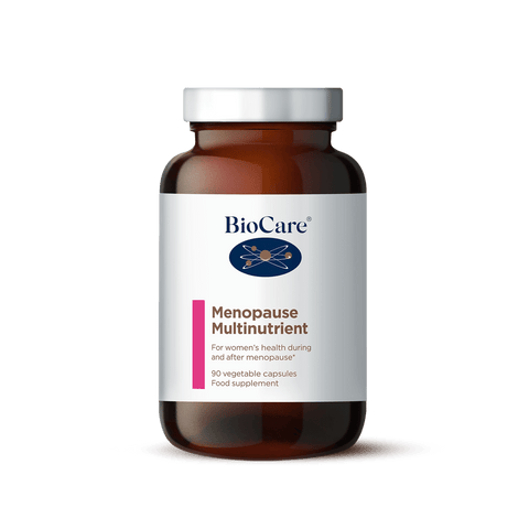 Menopause Multinutrient is an advance multivitamin for women's health during and after menopause, containing vitamin B6 to support female hormones, with magnesium, zinc, green tea and lycopene. Properties Ingredients Ingredients: Calcium Citrate, Capsule Shell (Hydroxypropyl Methylcellulose), Magnesium Citrate, Vitamin C (Magnesium Ascorbate), Choline Bitartrate, Vitamin B6 (Pyridoxal-5-Phosphate), Vitamin E (D-Alpha Tocopheryl Succinate), Zinc Citrate, Pantothenic Acid (Calcium Pantothenate), Niacin (Nicotinamide), Vitamin B12 (Methylcobalamin), Vitamin B2 (Riboflavin-5-Phosphate), Vitamin B1 (Thiamine Hydrochloride), Lycopene (Tomato Extract), L-Selenomethionine, Green Tea Extract (Camellia sinensis Leaf), Vitamin D3 (Cholecalciferol), Vitamin K2 (Menaquinone-7), Inositol, Para Amino Benzoic Acid, Vitamin A (Retinyl Acetate), Manganese Gluconate, Sodium Borate, Chromium Picolinate, Copper Citrate, Biotin, Folate [(6S)5-Methyltetrahydrofolic acid glucosamine salt], Sodium Molybdate, Potassium Iodide Nutrient Information Nutrient Information: Daily Intake Amount: Three capsules % NRV* Vitamin A 2500iu 750 µg 94 Vitamin D3 1000iu 25 µg 500 Vitamin E 100iu 67 mg 558 Vitamin K2 100 µg 133 Vitamin C 250 mg 313 Vitamin B1 25 mg 2273 Vitamin B2 25 mg 1786 Niacin (B3) 50 mg 313 Vitamin B6 50 mg 3571 Folate (Methylfolate) 400 µg 200 Vitamin B12 (Methyl B12) 400 µg 16000 Biotin 1020 µg 2040 Pantothenic Acid (B5) 50 mg 833 Calcium 75 mg 9 Magnesium 75 mg 20 Zinc 20 mg 200 Copper 500 µg 50 Manganese 1 mg 50 Selenium 100 µg 182 Chromium 200 µg 500 Molybdenum 200 µg 400 Iodine 200 µg 133 Choline 50 mg ✝ Inositol 10 mg ✝ PABA 10 mg ✝ Green Tea Extract 10:1 20 mg ✝ Lycopene 3 mg ✝ Boron 1 mg ✝ * NRV is the Nutrient Reference Value ✝ NRV not yet established Dietary Information This product is suitable for the following requirements: Vegetarian Vegan Allergens This product is hypoallergenic / does not contain any of the 14 major allergens listed in Annex II (1169/2011) of the EU Food Information for Consumers Regulation. Format Format Capsules Quantity 90 Can capsule be opened and sprinkled onto food? Yes Directions & Storage Directions: Three capsules taken daily with food, two at breakfast, one at lunch, or as professionally directed. Storage: Store in a cool, dry place away from direct sunlight and heat Warnings Not suitable for use during planned pregnancy, pregnancy or breast-feeding Not suitable for children Do not exceed the recommended daily intake/dose Do not purchase or consume if the seal is broken Keep out of reach of children Food supplements should not be used as a substitute for a varied and balanced diet and healthy lifestyle Additional Warnings: Long term intake of amounts greater than 10mg of vitamin B6 daily may lead to mild tingling and numbness. Storage Images Package Label