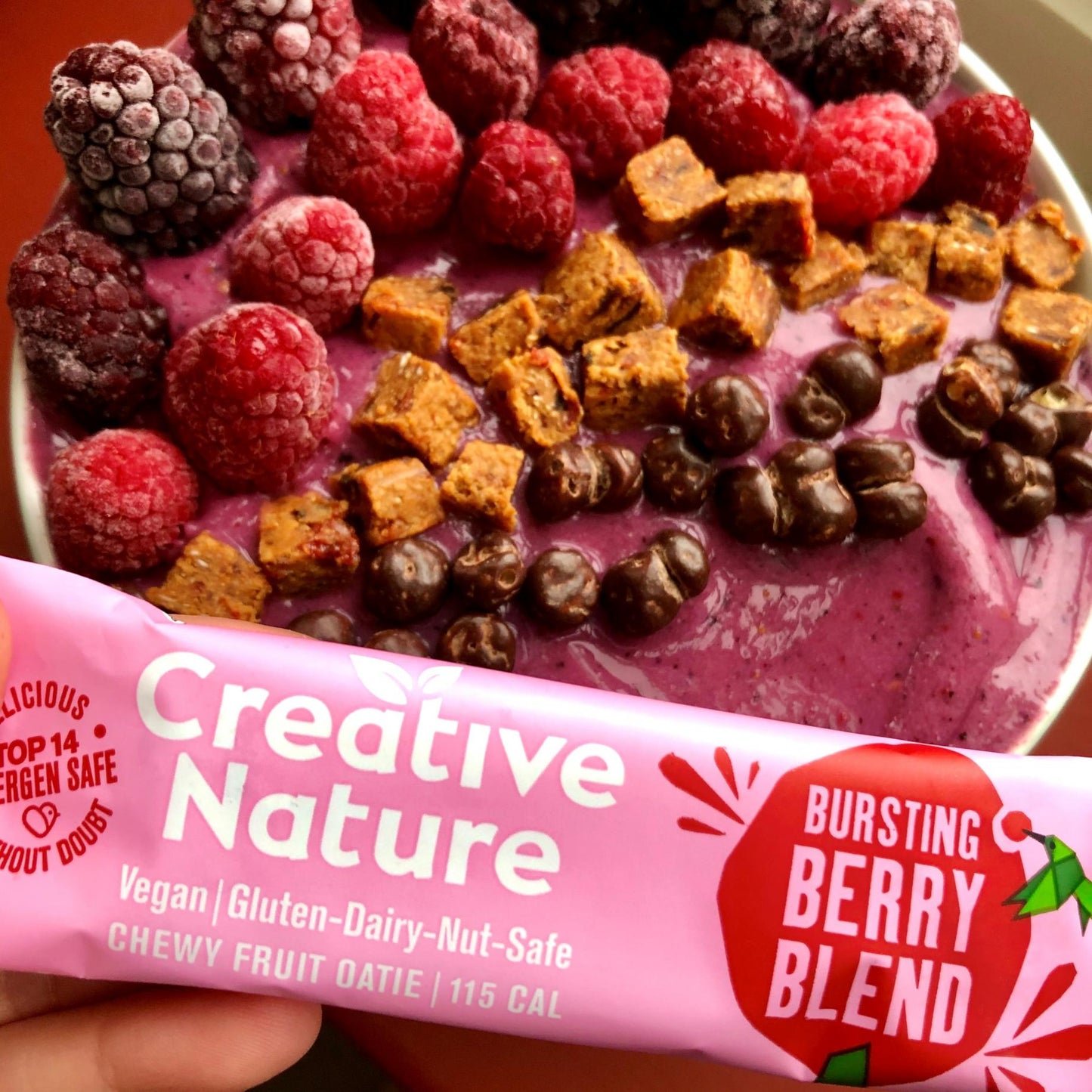 Fruity bars packed full of various dried fruit, oats and goji berries. Raw, vegan, dairy free, gluten free and nut free bars suitable for most diets and allergies. They provide energy and have vitamin C-rich ingredients. Great as a midday pick me up or a delicious pre-workout snack. Properties Ingredients Ingredients: Gluten Free Oats, Dried Fruit (67%) (Apricots, Cranberries, Sultanas, Sour Cherries, Goji Berries, Mango), Chicory Fibre, Vegetable Glycerine, Natural Flavouring. Allergy advice: For allergens, see ingredients in bold. There are 14 major allergens listed in Annex II (1169/2011) of the EU Food Information for Consumers Regulation. Nutrient Information Nutritional Information: Per 100g Energy (kJ) 1354 kJ Energy (kcal) 320 kcal Fat 1.2 g of which Saturates 0.3 g Carbohydrate 70 g of which Sugars 27 g Protein 4.9 g Salt 0.6 g Dietary Information This product is suitable for the following requirements: Vegetarian Vegan Kosher Halal Allergens Contains: Oats Format Format Bars Quantity 20 Weight (grammes) 38 Directions & Storage Directions: Eat as desired. Warnings Do not exceed the recommended daily intake/dose Do not purchase or consume if the seal is broken Keep out of reach of children Food supplements should not be used as a substitute for a varied and balanced diet and healthy lifestyle Storage Images Package Label Certification Certified Gluten Free Certified Vegetarian Certified Vegan Certified Kosher
