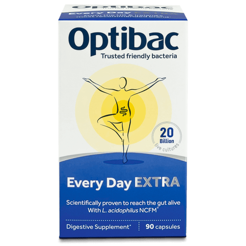 An advanced, high strength daily supplement to complement your body's natural gut bacteria. Suitable for vegans, Every Day EXTRA contains Lactobacillus acidophilus NCFM®, the most researched acidophilus strain in the world. Properties Ingredients Ingredients: Live cultures: Lactobacillus acidophilus NCFM®, Lactobacillus paracasei Lpc-37®, Bifidobacterium lactis Bi-07®, Bifidobacterium lactis Bl-04® Each capsule guarantees 20 billion live cultures Vegetarian capsule: hydroxypropyl methylcellulose; anti-caking agents: vegetable magnesium stearate, silicon dioxide. Stabiliser: micro-crystalline cellulose, Anti-caking agent: vegetable magnesium stearate; antioxidant: ascorbic acid Allergens Dairy Free | Gluten Free | No artificial sweeteners, flavours, colours or preservatives. | Non GMO | Sugar Free | Vegan | Vegetarian | Yeast Free Nutrition Table Supplement Facts Serving Size: 1 Capsule Servings Per Container: 90 Amount Per Serving % Daily Value Live cultures: Lactobacillus rhamnosus Rosell-11, Lactobacillus acidophilus/helveticus Rosell-52, Bifidobacterium longum Rosell-175, Bifidobacterium breve Rosell-70, Bifidobacterium bifidum Rosell-71, Lactococcus lactis Rosell-1058; Fructooligosaccharides (FOS 88mg) 5 billion live cultures 88mg FOS fibres Stabiliser: potato starch Vegetarian capsule: hydroxypropyl methylcellulose Anti-caking agent: vegetable magnesium stearate Product Information Size: 90 capsules Directions: For best results take 1 capsule daily, preferably with breakfast. If desired, or professionally directed, can be increased to 2 capsules a day. Can be used on an ongoing basis. Suitable from 12 months onwards. For those unable to swallow capsules, the capsule can be opened and the contents mixed into cool food or drinks. Do not exceed recommended daily dosage.