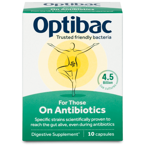 A high quality live cultures supplement with specific strains of friendly bacteria scientifically researched to take alongside a course of antibiotics. For those aged 4 years+. Properties Ingredients Ingredients: Live cultures: (Lactobacillus rhamnosus Rosell-11, Bifidobacterium lactis Lafti B94, Lactobacillus acidophilus/helveticus Rosell - 52), stabiliser: potato starch, vegetarian capsule: hydroxypropyl methylcellulose, anti-caking agent: vegetable magnesium stearate, antioxidant: ascorbic acid Additives: Potato starch, vegetable magnesium stearate, ascorbic acid Nutrient Information Nutrient Information: Daily Intake Amount: One capsule Total live cultures: 4.5 billion CFU % NRV* Lactobacillus rhamnosus Rosell-11, Bifidobacterium lactis Lafti B94, Lactobacillus acidophilus/helveticus Rosell - 52 ✝ * NRV is the Nutrient Reference Value ✝ NRV not yet established Dietary Information This product is suitable for the following requirements: Vegetarian Vegan Allergens This product is hypoallergenic / does not contain any of the 14 major allergens listed in Annex II (1169/2011) of the EU Food Information for Consumers Regulation. Format Format Capsules Quantity 10 Dimensions of Capsule Length 86 mm Width 70 mm Depth 30 mm Can capsule be opened and sprinkled onto food? Yes Directions & Storage Directions: Take one capsule daily with food, preferably with breakfast, every day during antibiotic course and preferably for one week after, or as professionally directed. Continue taking until pack is completed and add a second pack if the antibiotic treatment lasts more than one week. For those aged 4 years+. Storage: Store in a cool, dry place away from direct sunlight and heat Warnings Do not exceed the recommended daily intake/dose Do not purchase or consume if the seal is broken Keep out of reach of children Food supplements should not be used as a substitute for a varied and balanced diet and healthy lifestyle Additional Warnings: Live cultures are not recommended for those with serious medical conditions e.g. those who are severely immunosuppressed, have pancreatitis, are in the ICU, have melaena, have a central venous catheter, infants with short bowel syndrome, or to patients with open wounds following major surgery; unless under a doctor's care. Storage Images Package Label
