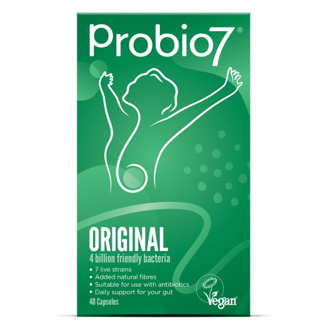 Probio7 Original Vegan contains live bacteria to complement the gut flora naturally present in your digestive system. Each capsule contains 4 billion friendly bacteria from 7 strains including L. acidophilus, plus 2 types of natural fibre which feed the bacteria. Properties Ingredients Ingredients: Soy Fibre, Chicory Inulin Fibre (Fructo-oligosaccharide), Hydroxy Propyl Methyl Cellulose (Vegetable Cellulose Capsule Shell), Bacteria Complex**Bacteria Complex contains L. acidophilus, L. casei, Streptococcus thermophilus, B. bifidum, L. bulgaricus B. longum & Lactococcus lactis (L. = Lactobacillus & B. = Bifidobacterium) Allergy advice: For allergens, see ingredients in bold. There are 14 major allergens listed in Annex II (1169/2011) of the EU Food Information for Consumers Regulation. Additives: Maltodextrin (bulking agent), Magnesium Stearate (Anti-caking), Silica (Anti-caking), Titanium dioxide (Colour) Nutrient Information Nutrient Information: Daily Intake Amount: One capsule Total live cultures: 4 billion CFU % NRV* Probio7 bacterial complex 20 mg ✝ * NRV is the Nutrient Reference Value ✝ NRV not yet established Dietary Information This product is suitable for the following requirements: Vegetarian Vegan Halal Allergens Contains: Soybeans Format Format Capsules Quantity 40 Dimensions of Capsule Length 21.7 mm Width 7.64 mm Depth 7.64 mm Can capsule be opened and sprinkled onto food? Yes Directions & Storage Directions: Suitable for daily use for anyone, aged two years and over. Take one capsule daily, ideally with food. Storage: Store in a cool, dry place away from direct sunlight and heat Warnings If you are pregnant, breast-feeding, have a medical condition or are under medical supervision, please consult a doctor before use Do not exceed the recommended daily intake/dose Do not purchase or consume if the seal is broken Keep out of reach of children Food supplements should not be used as a substitute for a varied and balanced diet and healthy lifestyle Storage Certification Certified Gluten Free Certified Vegan Certified Halal Certified GMP