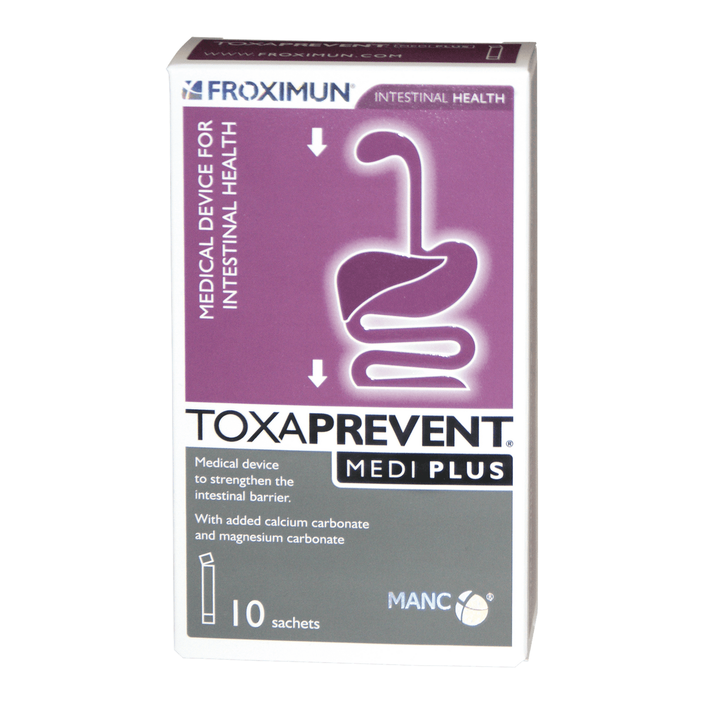 Toxaprevent MEDI PLUS Sachets are used to absorb and remove toxic substances from the upper digestive tract (mouth, esophagus and stomach). The active ingredient MANC® (Modified and Activated Natural Clinoptilolite) is a clean form of zeolite which is patented for its ability to absorb toxins. This product has a Medical Device Licence, THR or is a food for special medical purposes. Properties Ingredients Ingredients: MANC® (Modified and Activated Natural Clinoptilolite), Calcium carbonate , Magnesium carbonate Nutrient Information Nutrient Information: Daily Intake Amount: One sachet % NRV* MANC® (Modified and Activated Natural Clinoptilolite) 3000 mg ✝ Magnesium carbonate ✝ Calcium carbonate ✝ * NRV is the Nutrient Reference Value ✝ NRV not yet established Dietary Information This product is suitable for the following requirements: Vegetarian Vegan Kosher Halal Allergens This product is hypoallergenic / does not contain any of the 14 major allergens listed in Annex II (1169/2011) of the EU Food Information for Consumers Regulation. Format Format Sachets Quantity 10 Weight (grammes) 3 Directions & Storage Directions: Stir the contents of one sachet into 300ml of water and drink. If necessary, take one more sachet before bed. Storage: Store in a cool, dry place away from direct sunlight and heat Additional Instructions: Once a sachet is opened please consume immediately. Warnings If you are pregnant, breast-feeding, have a medical condition or are under medical supervision, please consult a doctor before use Do not exceed the recommended daily intake/dose Do not purchase or consume if the seal is broken Keep out of reach of children Food supplements should not be used as a substitute for a varied and balanced diet and healthy lifestyle Additional Warnings: Leave two hours between taking medication and Toxaprevent Storage Certification Certified Kosher Certified Halal